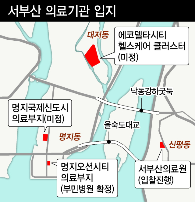 20일 부산시와 부산진해경제자유구역청(이하 경자청) 등에 따르면 강서구에는 △에코델타시티 △명지국제신도시 △명지오션시티 3곳에 의료 부지가 확보됐다. 하지만 2027년 부민병원이 들어서는 명지오션시티를 제외한 나머지 부지에는 병원을 건립하려는 움직임은 없는 상태다.
