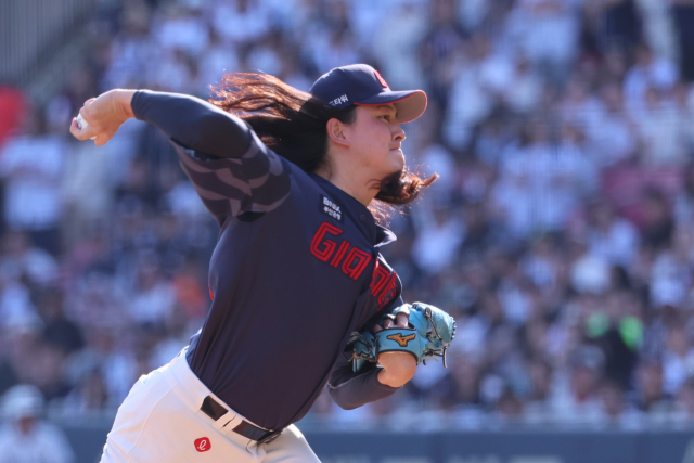 롯데 자이언츠 마무리투수 김원중이 지난 19일 서울 잠실야구장에서 열린 2024 KBO리그 두산 베어스와 경기에서 9회말 등판해 역투하고 있다. 연합뉴스