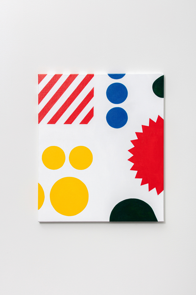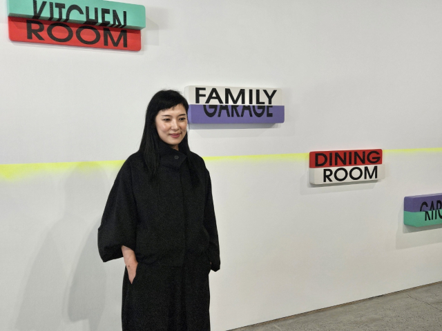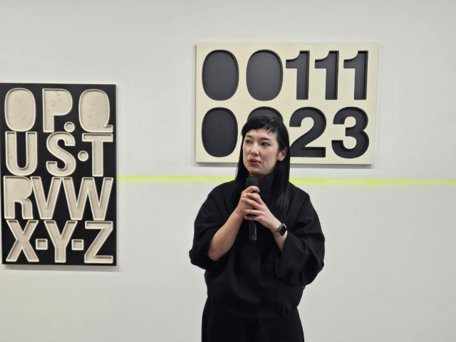 이어지는 공간에는 스티커, 표지판처럼 일상에서 접하는 시각 언어를 캔버스, 천, 아크릴, 석고 등 다양한 재료로 추상화했다. 마치 작가는 관객에게 이 작품은 어떤 것이 변신했는지 퀴즈를 내는 기분이다. 덕분에 관객은 추상적이고 미학적인 작품을 가벼운 즐거움으로 느낄 수 있다.