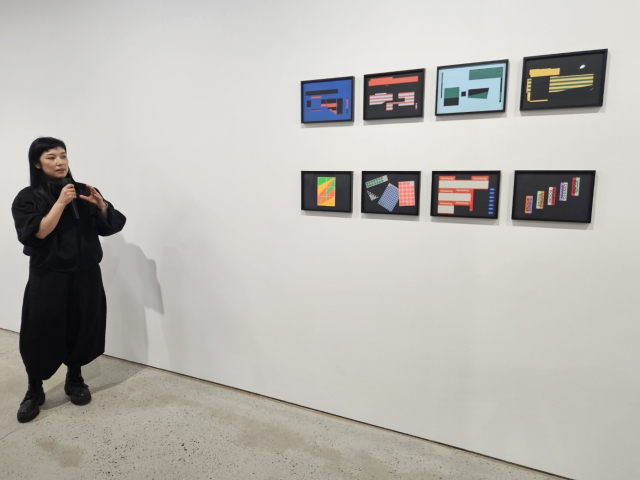 국제갤러리 부산점에서 자신의 작품을 설명하고 있는 김영나 작가 모습. 김효정 기자