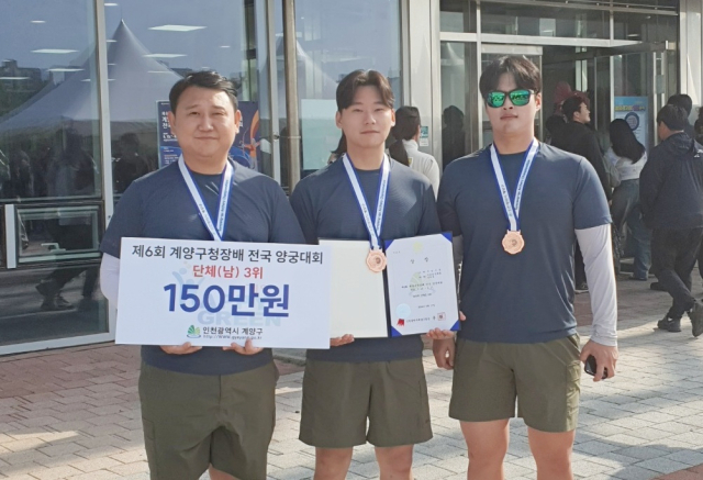 제6회 계양구청장배전국양궁대회에서 남자 단체전 3위를 한 부산 사상구청 양궁팀.