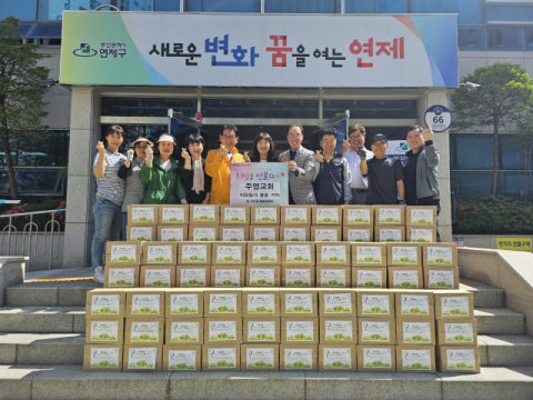 연제구 연산1동(동장 이숙정)은 지난 20일 주영교회(담임목사 남덕모)로부터 이웃돕기 성품으로 생필품 및 레토르트 식품 140박스를 기탁받았다.