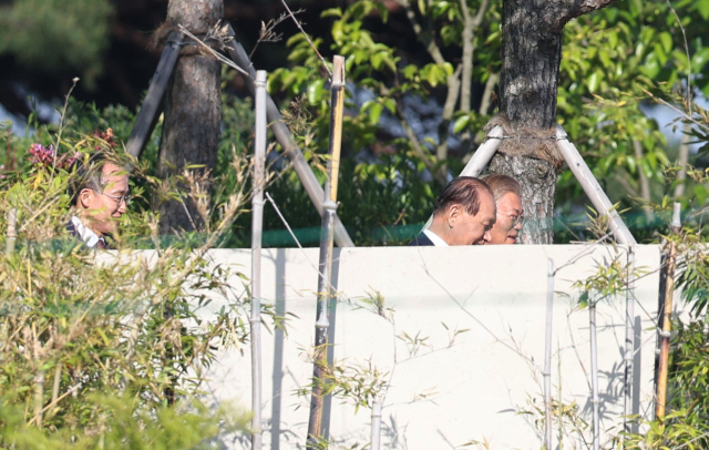 국민의힘 황우여 비상대책위원장, 추경호 원내대표가 23일 오후 경남 양산시 하북면 평산마을 문재인 전 대통령 사저에서 문 전 대통령 예방 후 함께 이동하고 있다. 황 위원장과 추 원내대표는 앞서 이날 김해시 진영읍 봉하마을에서 열린 노무현 전 대통령 서거 15주기 추도식에 참석했다. 연합뉴스