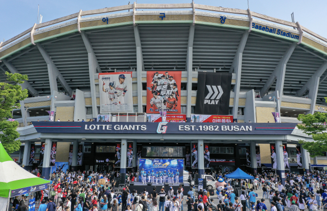 지난 25일 오후 부산 사직야구장 앞 광장에서 열린 뮤지컬 ‘야구왕, 마린스!’ 미니 콘서트를 지켜보던 젊은 연인 혹은 가족 단위 야구팬들끼리 스스럼없이 나누던 대화다.
