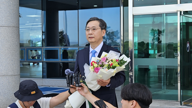 우주항공청은 27일 윤영빈 초대 청장을 비롯해 전 직원 110여 명이 임시청사로 출근했다고 밝혔다. 윤 청장은 첫 출근길에 직원들로부터 꽃다발과 함께 환영을 받았다.