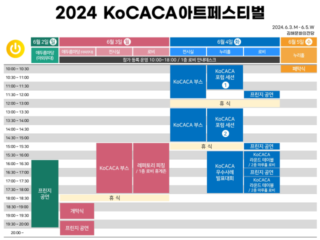 6월 4일에는 KoCACA우수사례발표대회와 KoCACA라운드테이블이 열린다. 올해 첫선을 보일 KoCACA우수사례발표대회는 자생력과 경쟁력을 지닌 문예회관을 발굴해 우수 경영 사례를 공유하고 상호 간의 발전을 도모하기 위해 마련됐다. 대상과 최우수상 등 총 3개의 문예회관 우수 사례가 선정된다.