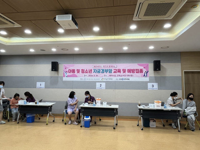 동아대병원(원장 안희배)은 지난 24일 만 9~14세 저소득 아동·청소년을 대상으로 자궁경부암 예방 교육과 무료 접종 사업을 진행했다.
