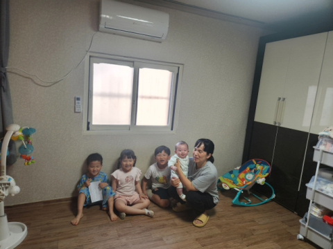 특히 손O학님의 가구는 03년생 대학생 첫째 딸부터 올해 1월 태어난 24년생 열 번째 아들까지 2살 터울로 10명의 자녀가 한집에 살고 있는 12명 대가족 가구이다. 설치가 완료된 후 9살 여섯 번째 아들은 “학교를 마치고 집에 왔는데, 방이 너무 시원해서 깜짝 놀랐다며, 이렇게 좋은 선물을 주셔서 감사하다고 연신 고개를 숙였다.