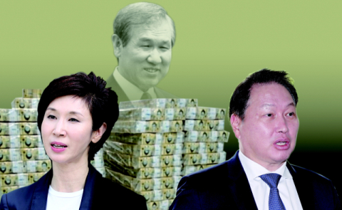 그런데 그 엄청난 재산분할에는 하나의 ‘비밀 코드’가 결정적 역할을 했다고 한다. 바로 노태우 전 대통령의 비자금 유입이다. 1995년 당시 온 나라를 발칵 뒤집어 놓았던 노 전 대통령의 ‘4000억 원 비자금’ 보유설이 30년을 훌쩍 뛰어넘어 자녀의 이혼 소송을 계기로 다시 세상에 소환된 것이다. 노소영 관장은 1990년대 부친인 노 전 대통령의 비자금이 SK그룹에 유입돼 증권사 인수 등에 사용됐다고 주장했다. 그러면서 50억 원짜리 약속어음 6장의 사진과 ‘선경 300억’ 메모를 재판부에 제출했고, 재판부는 이 자금이 SK그룹의 경영 활동을 뒷받침한 ‘유형적 기여’의 증빙으로 받아들였다.