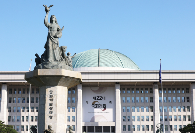 서울 여의도 국회 본청에 제22대 국회 개원을 축하하는 현수막이 걸려있다. 연합뉴스