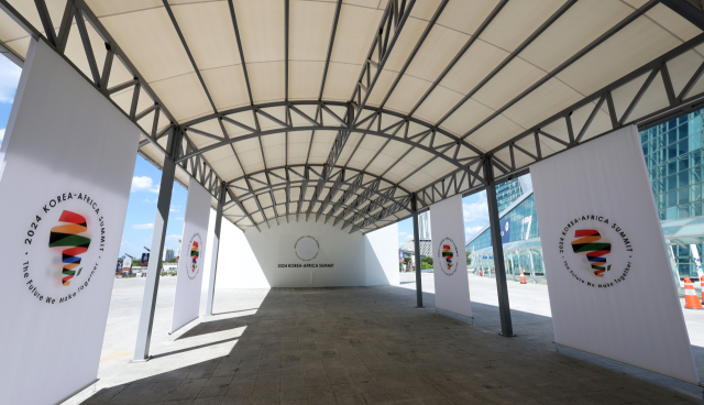 한·아프리카 정상회의 개막을 하루 앞둔 3일 경기 고양시 킨텍스에 정상회의 개최를 알리는 현수막들이 걸려 있다. 연합뉴스