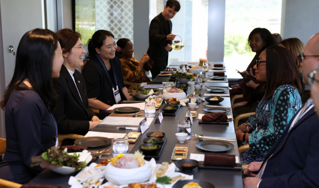 장미란(왼쪽 두 번째) 문화체육관광부 제2차관이 3일 서울 종로구의 한 식당에서 2024 한-아프리카 관광포럼 주요 참석자 및 연사와 오찬을 하고 있다. 문화체육관광부 제공
