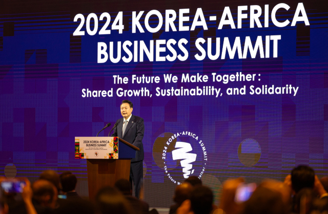 윤석열 대통령이 5일 서울 중구 롯데호텔에서 열린 '2024 한-아프리카 비즈니스 서밋 개회식'에서 기조연설을 하고 있다. 대통령실 제공