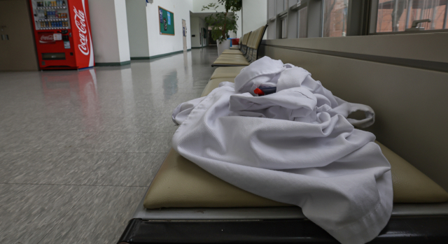대한의사협회가 9일 전공의에 대한 정부의 ‘행정처분 완전 취소’ 등을 요구하며 범의료계의 집단 휴진 곧 총파업을 발표했다. 한 대학병원 복도에 전공의들이 떠나면서 벗어 놓은 흰 가운. 부산일보DB