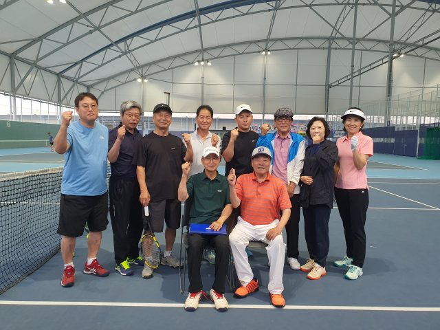 재부함안향우회테니스회(회장 김효동)는 최근 함안공설 실내테니스장에서 함안 시니어 테니스클럽 친선 경기와 월회대회를 가졌다.