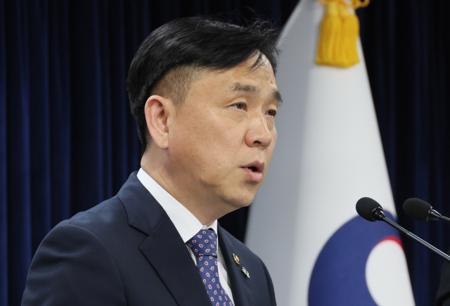강도현 과학기술정보통신부 제2차관이 14일 서울 종로구 정부서울청사에서 스테이지엑스의 제4이동통신사 후보자격 취소 예정과 관련해 브리핑하고 있다. 연합뉴스