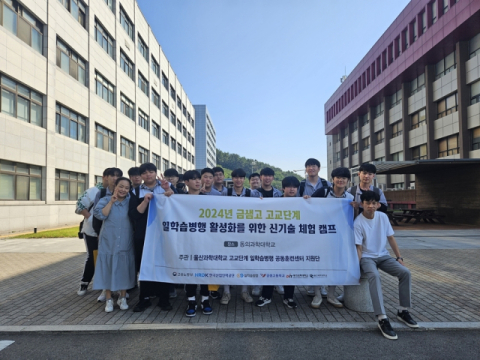 이날 행사에는 금샘고 도제반(전자과) 2학년 16명과 도제교육부장·담당 교사, 도제 전담관 등이 대학을 방문해 ‘4차산업 혁명에 따른 반도체와 전자 분야 기술 특강’과 ‘AI 노래작사 작곡하기’ 등의 신기술 체험 캠프에 참여했다.