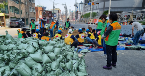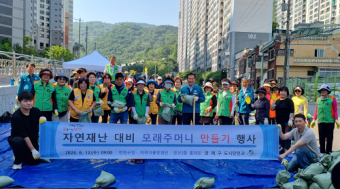 부산 연제구(구청장 주석수)는 지난 12일 여름철 자연재난에 선제적으로 대비하고자 60여 명의 주민들과 함께 수방용 모래주머니를 준비했다.