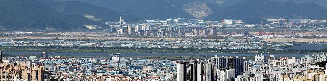 부산 황령산 봉수대에서 바라본 강서구 에코델타시티. 정종회 기자 jjh@