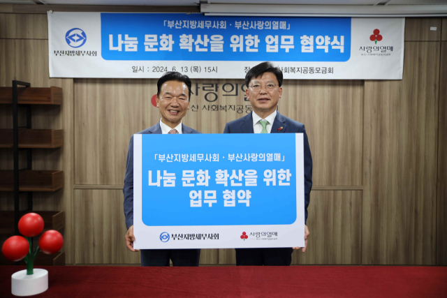부산지방세무사회(회장 황인재)와 부산사회복지공동모금회(부산사랑의열매·회장 최금식)가 부산 지역 나눔 문화 확산을 위한 업무협약 체결과 부산사랑의열매 29호 나눔리더스클럽으로 가입했다.