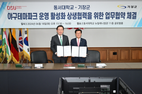 기장군(군수 정종복)은 18일 동서대(총장 장제국)와 함께 야구테마파크(기장군 일광읍 청광리 일원) 운영 활성화를 위한 업무협약을 체결했다고 밝혔다.