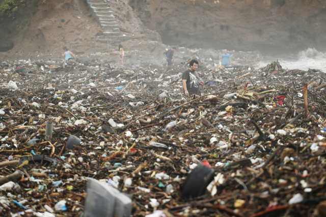 지난 14일부터 쏟아진 폭우로 18일(현지시간) 엘살바도르 주민들이 쓰레기 더미에서 재활용품을 찾고 있다. 페르난도 로페즈 엘살바도르 환경부 장관은 이번 폭우로 최소 11명이 사망했다고 밝혔다. EPA연합뉴스