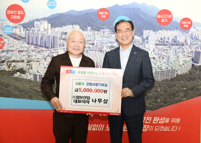 (주)삼보산업 나무상 대표이사는 지난 17일 부산 사상구(구청장 조병길)에 고향사랑기부금 500만 원을 기부했다.