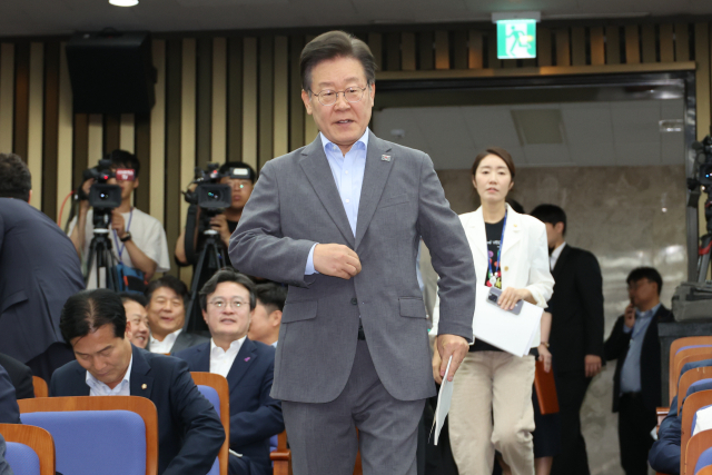 더불어민주당 이재명 대표가 20일 오후 서울 여의도 국회에서 열린 긴급 의원총회에 참석하고 있다. 연합뉴스