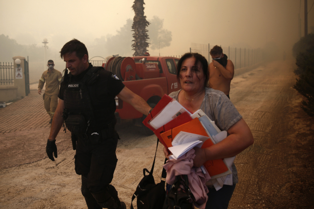 [포토뉴스] 산불 대피하는 그리스 주민들