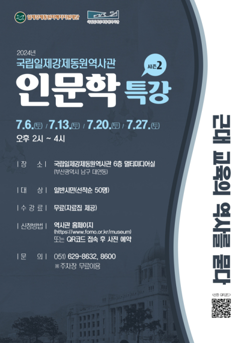 국립일제강제동원역사관은 7월 6일부터 27일까지 매주 토요일 오후 2~4시 ‘근대 교육의 역사를 묻다’라는 주제로 인문학 특강 시즌2를 개최한다.
