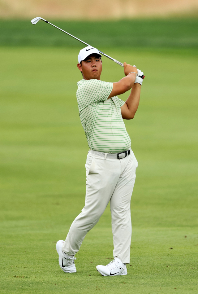 김주형이 23일(한국시간) PGA 트래블러스 챔피언십 3라운드 도중 7번홀에서 경기를 하고 있다. AFP연합뉴스