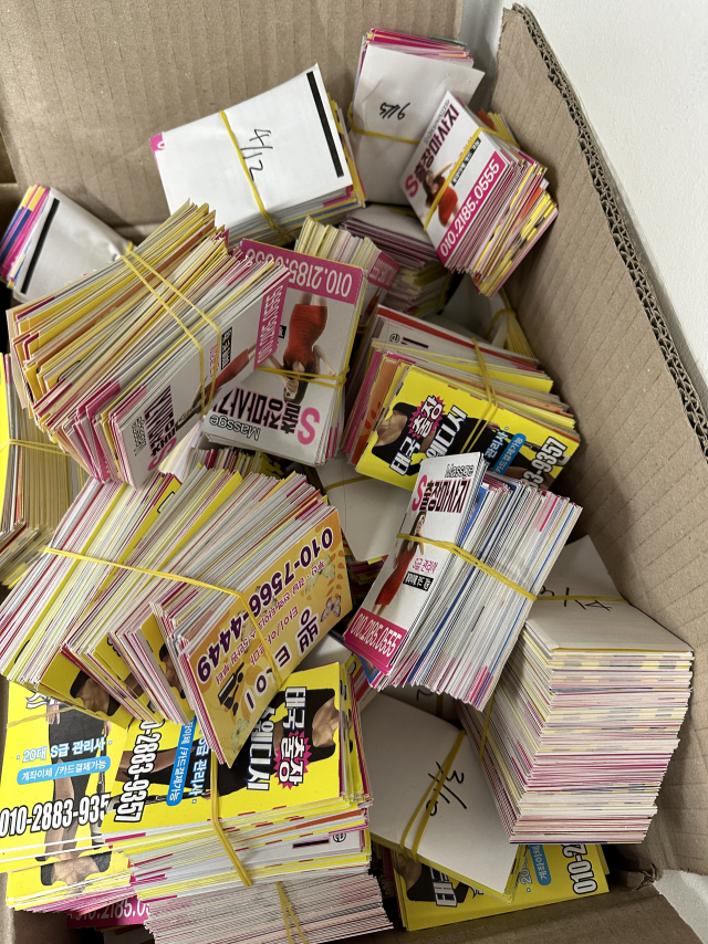 불법 마사지 등 홍보 명함 방치