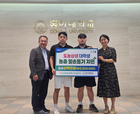 농협중앙회 부산본부(본부장 정찬호)는 24일 동아대학교 강당에서 열린 ‘농촌 일손돕기 출정식’에 참석하여 지원금을 전달했다.