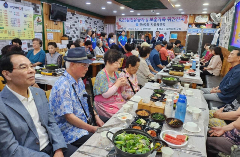 부산 연제구 연산3동(동장 김성희)은 지난 21일 한국자유총연맹 연제구지회 연산3동위원회(위원장 박두금) 주관으로 지역 식당(배산돼지국밥)에서 관내 거주 참전유공자 및 보훈 가족 등 60여 명이 참석한 가운데 ‘6.25 참전유공자 및 보훈가족 위안잔치’를 개최했다.