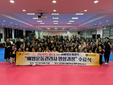 부산외국어대학교(총장 장순흥) 평생교육원은 지난 6월 25일 부산시 생애재설계대학 50플러스 사업 위탁 기관으로서 ‘예방운동관리사’ 과정 4기 수료식을 성료했다고 7월 1일 밝혔다.