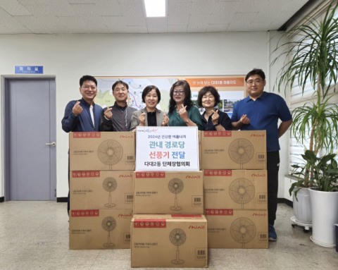 부산 사하구 다대2동 단체장협의회는 지난 2일 관내 12개소 아파트 경로당에 선풍기 12대(60만원 상당)를 전달했다.