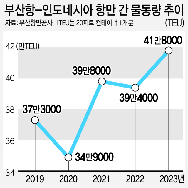 인도네시아는 연간 해상 물동량이 1700만TEU에 이르는 세계 11위권 국가다. 부산항과의 물동량도 지난해 41만 8000TEU로, 매년 증가하는 추세다. 더불어 연 5% 이상 국가 경제가 고속 성장 중이며, ‘신수도’ 개발 등도 이뤄지고 있어 물류 수요가 갈수록 커진다.