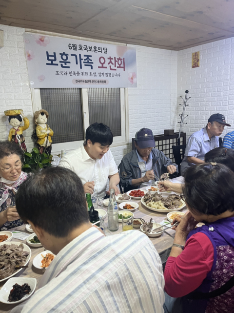 이번 행사는 한국자유총연맹 회원들이 6월 호국보훈의 달을 맞아 순국선열의 고귀한 희생을 기억하고 보훈 가족의 건강을 기원하며 관내 보훈가족 30명을 초청하여 감사의 마음을 담아 따뜻한 식사를 대접했다.