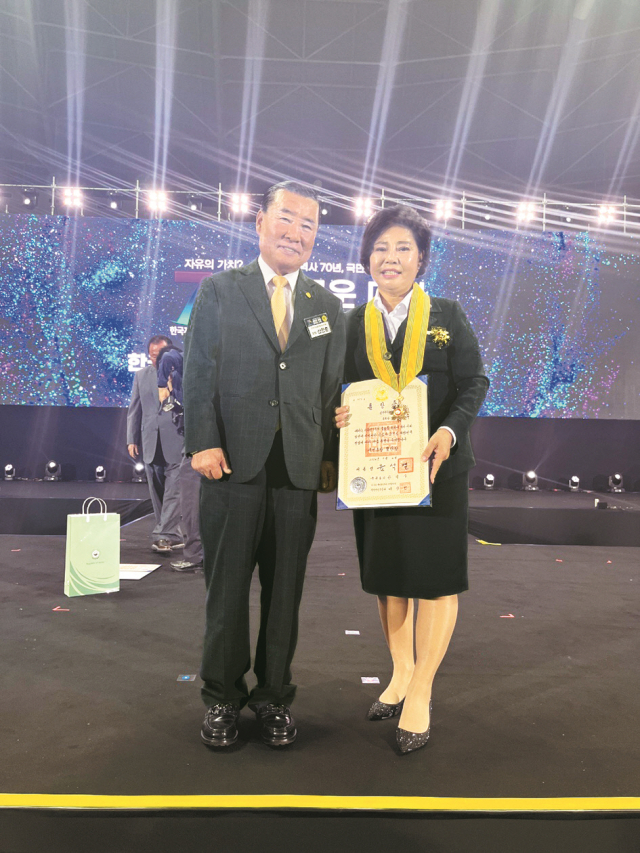 이날 윤석열 대통령은 자유민주주의 수호와 국민운동 활성화에 기여한 공로를 인정해 권영숙 부산시지부 부회장에 국민훈장 모란장 등 11명에게 훈·포장과 표창을 수여하고 격려했다.