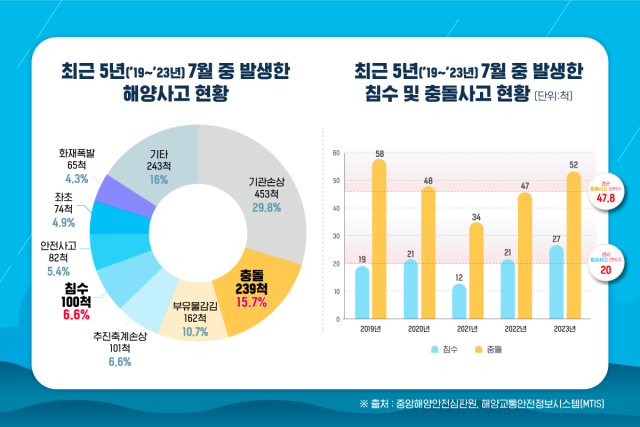 최근 5년(2019~2023년) 7월 중 발생한 해양사고 현황. KOMSA 제공
