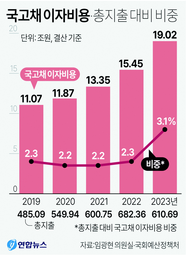 국고채 이자비용, 총지출대비 3.1%로 급증