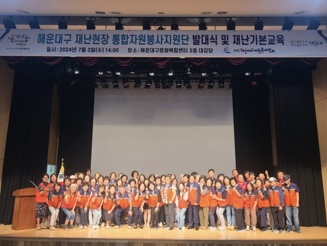 (사)해운대구자원봉사센터(센터장 손유정)는 지난 3일 해운대구문화복합센터에서 해운대구 재난현장 통합자원봉사지원단 발대식을 가졌다.