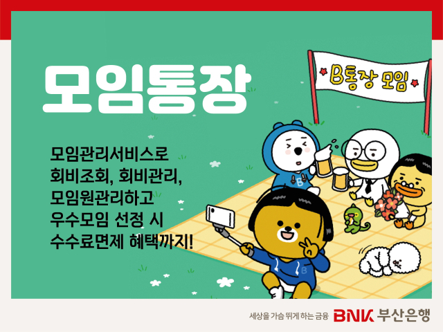 9일 BNK부산은행에 따르면 지난 5월 말 기준 부산은행 모임통장 개설 계좌는 15만 4849좌로 집계됐다. 최근 들어 예금주가 모임원을 부산은행 앱에 초대하면 거래 내역, 회비 걷기, 출금 요청 등이 가능하게 되면서 가입자가 대폭 늘었다. 모임 구성원이 모임통장 구성원에게 출금, 입금을 요청하는 기능은 다른 은행에는 없는 기능이다. 부산은행은 모임통장 고객 중 거래 실적에 따라 우수 모임을 선발해 이체 수수료와 환전 수수료 우대도 제공한다.