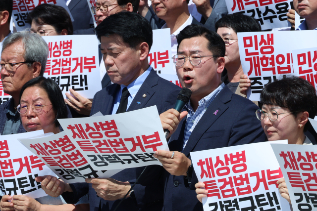 조국혁신당 김준형 대표 권한대행도 이날 회견에서 “윤 대통령이 채 상병 사건 수사외압의 몸통”이라며 “조국혁신당은 특검법 재의결이 실패할 경우 대통령 윤석열을 수사 대상으로 하는 ‘윤석열 특검법’을 발의하겠다”고 밝혔다.