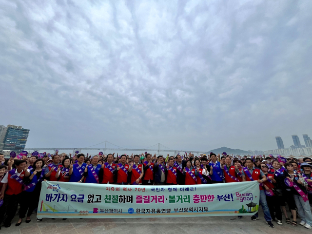 한국자유총연맹 부산시지부(회장 신한춘)는 11일 부산 광안리해수욕장 일대에서 부산지부 신한춘 회장과 이준승 부산시 행정부시장, 김현재 수영구 부구청장, 권영숙 한국자유총연맹 부산시지부 부회장 등 연맹 회원 450여 명이 참석한 가운데 관광하기 좋은 부산 홍보 캠페인을 가졌다.
