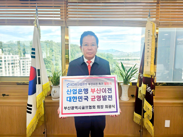 최광식 부산시 골프협회 회장이 12일 KDB산업은행의 부산 이전 촉구 챌린지에 동참했다.