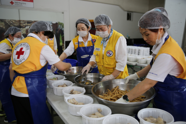 대한적십자사봉사회 부산진구지구협의회(회장 제정숙)는 지난 12일 직접 만든 삼계탕을 적십자 결연세대 등 180가구에 전달했다.