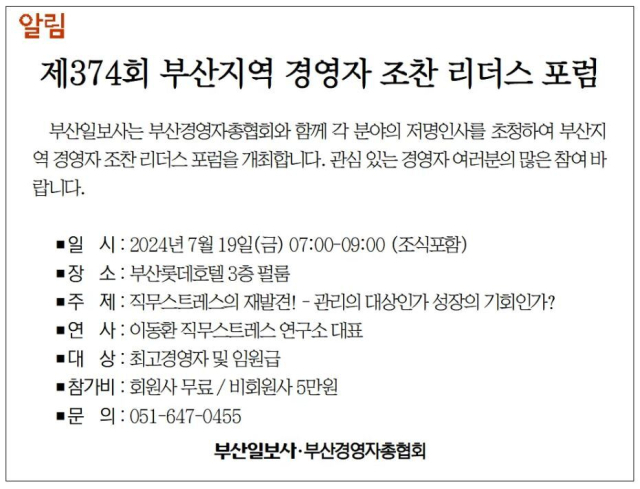 [알림] 제374회 부산지역 경영자 조찬 리더스 포럼