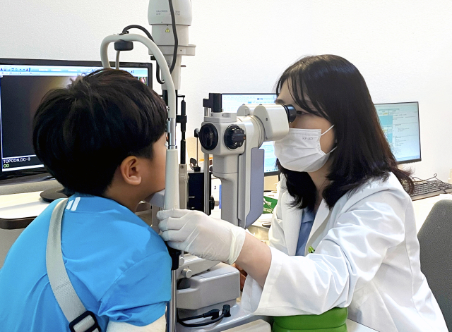 부산성모안과병원 이새미 진료과장이 소아 근시 환자를 진료하고 있다. 부산성모안과병원 제공