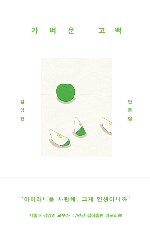 칼럼계의 아이돌 김영민이 ‘고라니처럼 튀어나온’ 상념을 써 내려간 단문 중 365편을 엄선해 엮었다. 그는 자신의 단문을 성찰적 드립이라고 표현한다. ‘인간은 문화적 양서류다. 문화에 질리면 야생을 꿈꾸지만, 야생에서 오래 버틸 수는 없기에 문화라는 물에 몸을 적셔야 하기 때문이다.’ 사람들이 왜 김영민에 열광하는지 이 책을 읽어 보면 알게 된다. 김영민 지음/김영사/256쪽/1만 8800원.
